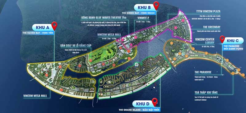 - Phía Tây: Liền kề phân khu Vịnh Tiên – "Thủ phủ" giải trí với VinWonders và Safari.